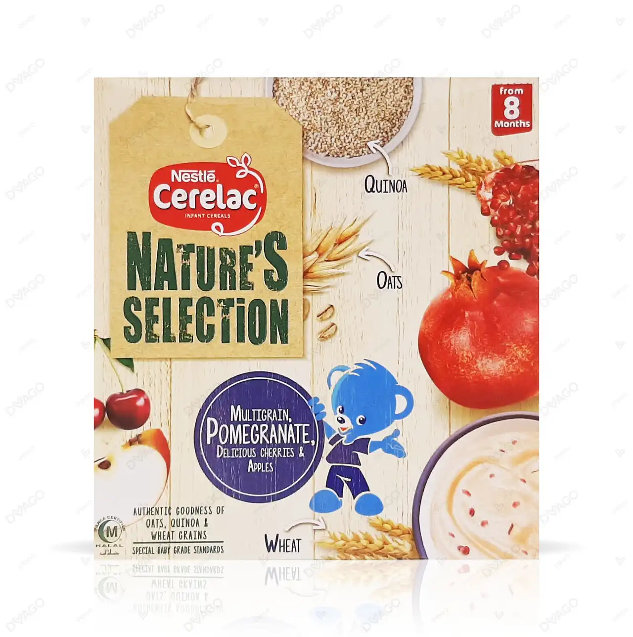 Nestlé CERELAC Nature’s Selection (Multigrain, Pomegranate, & Cherries) 175g is a nutrient-dense, iron-fortified baby cereal for infants from 8 months+, featuring a blend of grains (wheat, oats, quinoa) and fruit purees. Designed for weaning, this formula supports immune health, contains no added preservatives.
