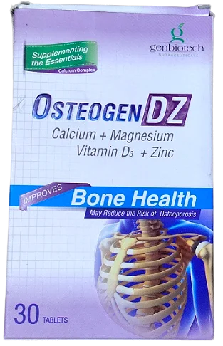 Uses: Osteogen DZ has been scientifically developed on the basis of the latest research to include calcium, Magnesium, Vitamin D3, Zinc which contribute to the maintenance of normal bone health. Getting enough calcium is especially important for men and women, over 50, during pregnancy and breastfeeding, and during and after menopause.